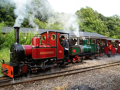 The Perrygrove Railway was opened in 1996 by Michael and Frances Crofts. The railway is close to Coleford in the Royal Forest of Dean, Gloucestershire. The line is a 3/4 mile out-and-back through open grassland and mature woodland, and seems longer than its true length. An extension is planned in the future. Passenger trains are usually steam-hauled. Understandably, the railway's presentation is oriented toward families, the main clientele, but there is much here for the enthusiast including 'Spirit of Adventure' and 'Lydia', the main passenger locos, and the Heywood Collection of early minimum-gauge rolling stock and one loco, Ursula. The railway could be called 'narrow-gauge', being on the upper edge of 'miniature'. A spooky and thoroughly enjoyable Halloween was added in 2008 to the jolly special occasions when Father Christmas comes down the chimney with loads of presents for good children.